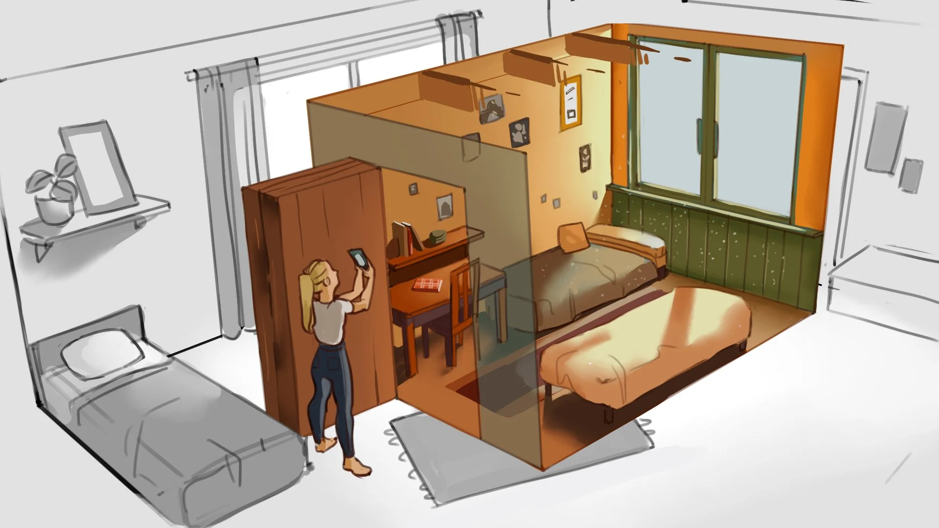Before a single camera was triggered, I led the pre-visualization phase, sketching out the entire user journey to align our vision with the Anne Frank House and our technical partners. This foundational work was vital for defining how a user would transition from their physical reality into a digital historical space.